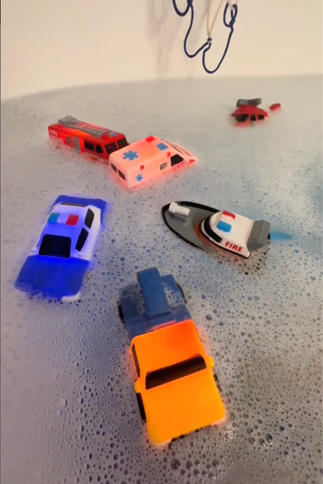 Minivae™ Light-Up Emergency Cars turn bath time into a bright, exciting adventure. Each vehicle activates with water, lighting up instantly to captivate kids and keep them engaged longer. Designed for play, safety, and durability, they combine vivid colors, smooth edges, and fun emergency-vehicle personalities that spark imagination.